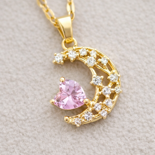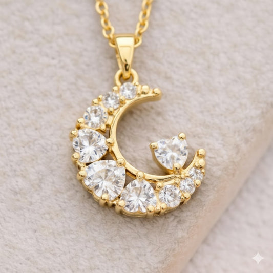 14 Ayar Altın Kaplama Hilal Kalp Kolye