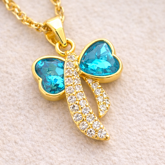 14 Ayar Altın Kaplama Fiyonk Mavi Kolye