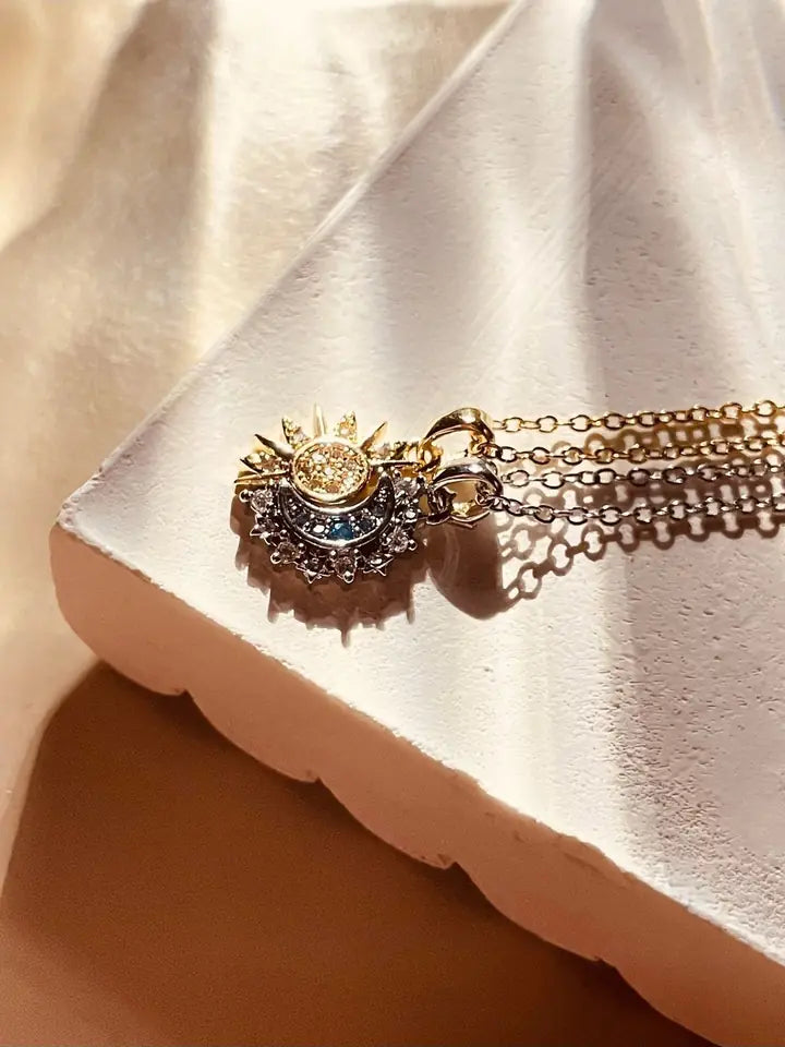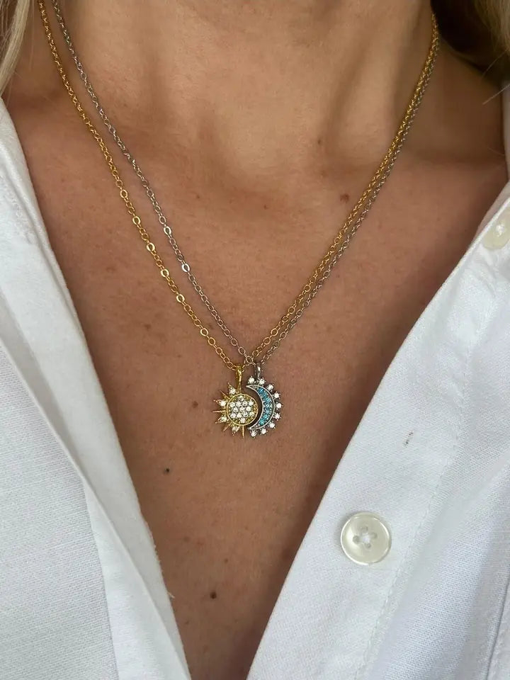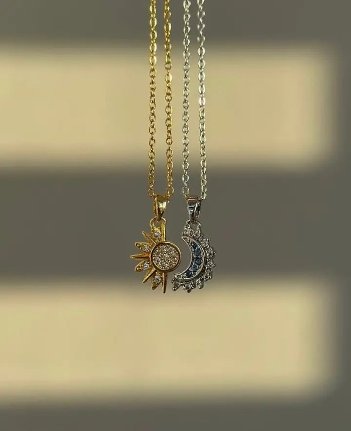 14 Ayar Altın Kaplama Ay ve Güneş Arkadaş Kolyesi