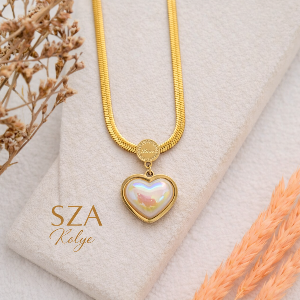 14 Ayar Altın Kaplama İtalyan İnci Kalp Kolye