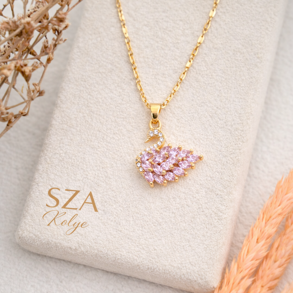 14 Ayar Altın Kaplama Kuğu Kolye