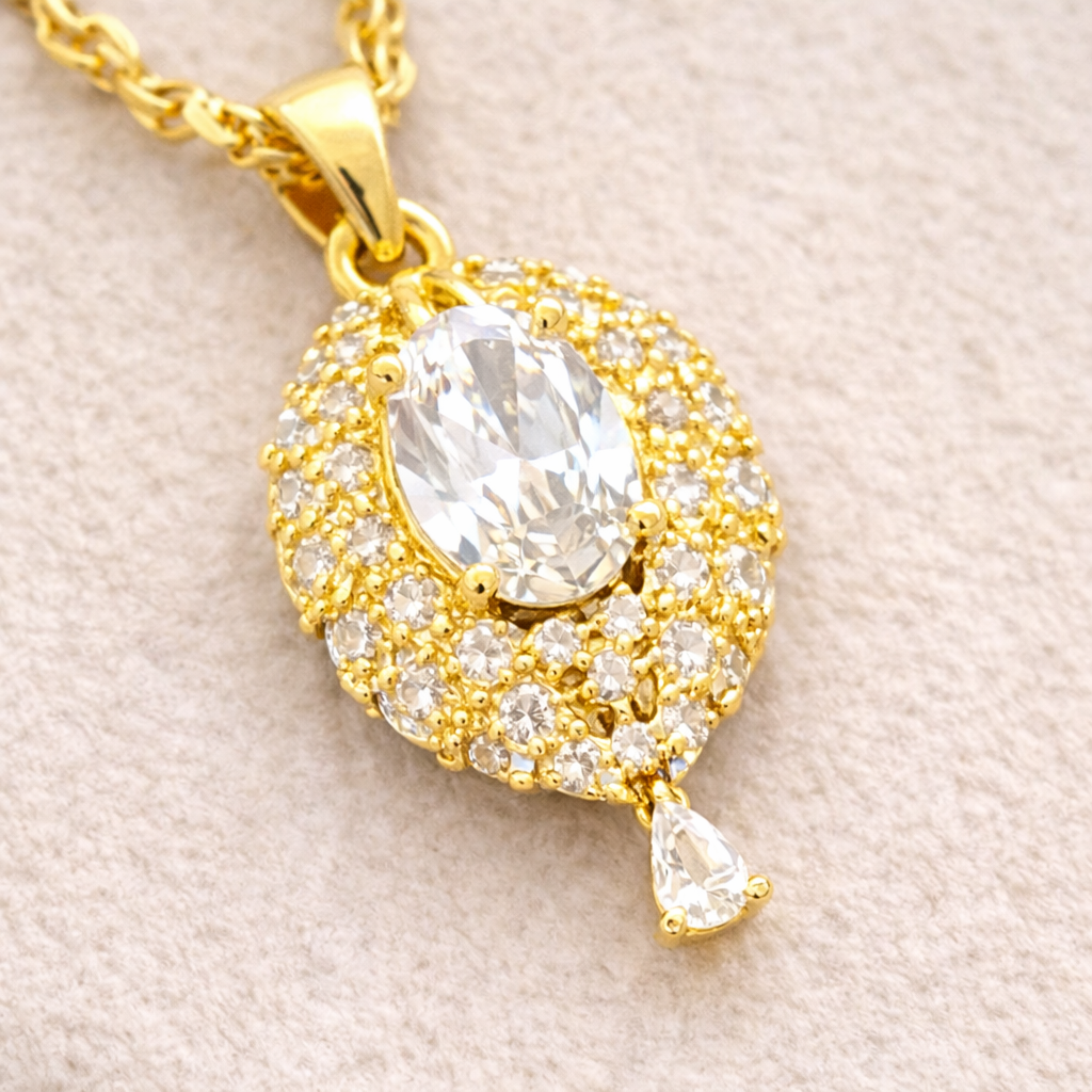 14 Ayar Altın Kaplama Zarif Taş Kolye